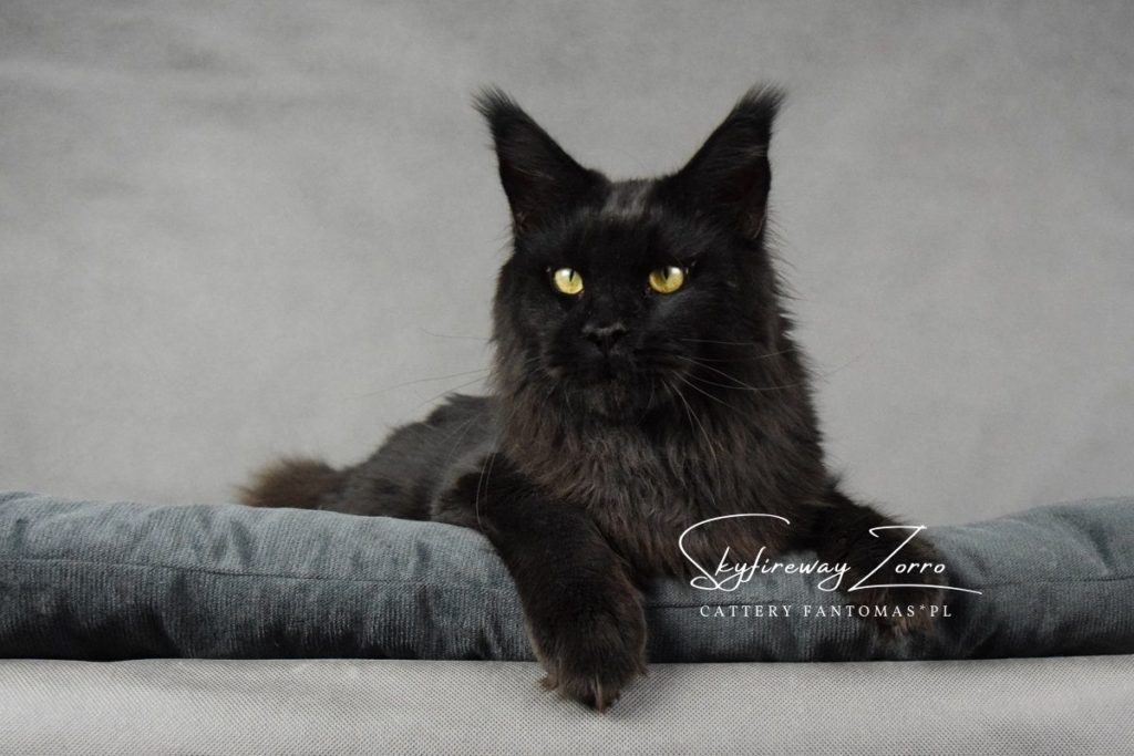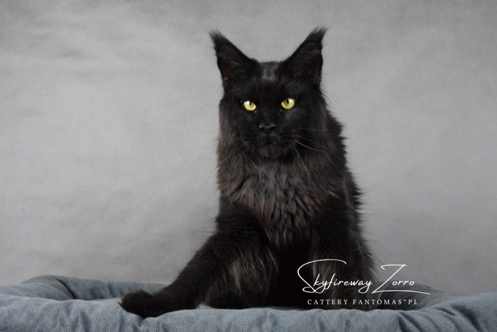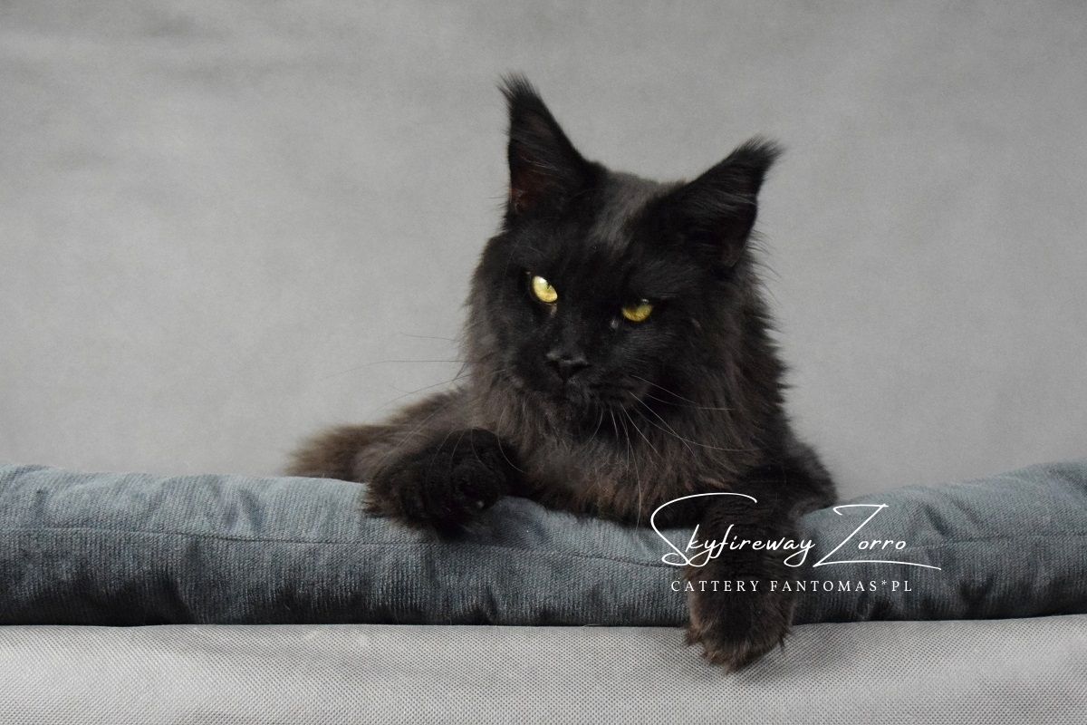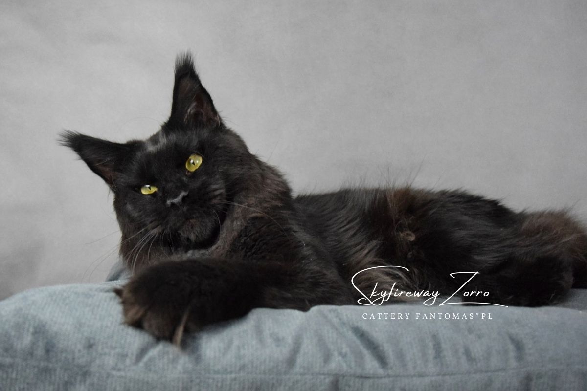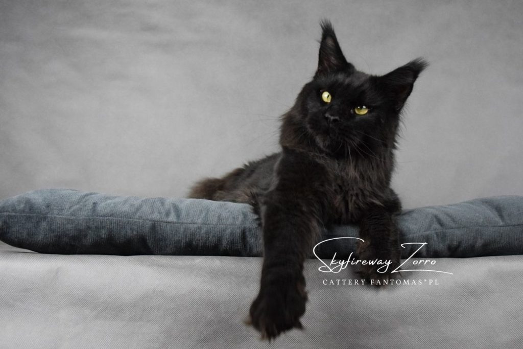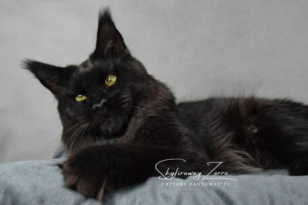 Po długich poszukiwaniach kocura, który idealnie będzie pasował do naszych kotek i przyszłych planów, sprowadziliśmy z Rosji do naszej hodowli Zorra. Zorro to kocur młody, ciągle nabierający masy i nadal mężniejący. Od początku jesteśmy niż zachwyceni choć jeszcze bardziej urzeka nas w nim jego charakter. Kocur zachowuje się jak małe kociątko, domaga się przytulania i całusków, jest ciągle blisko nas. Jego otwartość na kontakt z człowiekiem bardzo pasowałaby do psa niż kota, no ale takie właśnie są Maine Coon’y 🙂